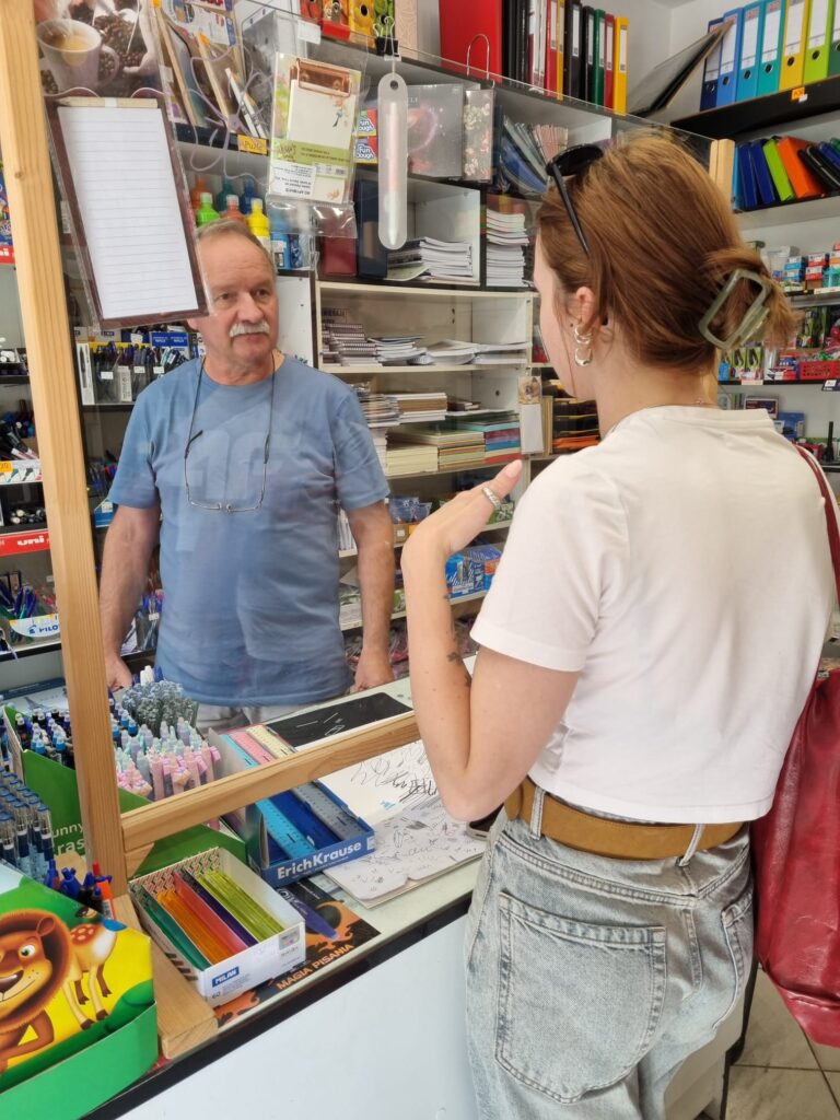 Następnie do sklepu przyszła grupa młodych ludzi z Gdańska, którzy trafili tu przypadkowo, a za nimi dwie nauczycielki, które również cenią Nodar za pomocną obsługę i możliwość zakupu pojedynczych kolorowych kartek, zamiast całych ryz.