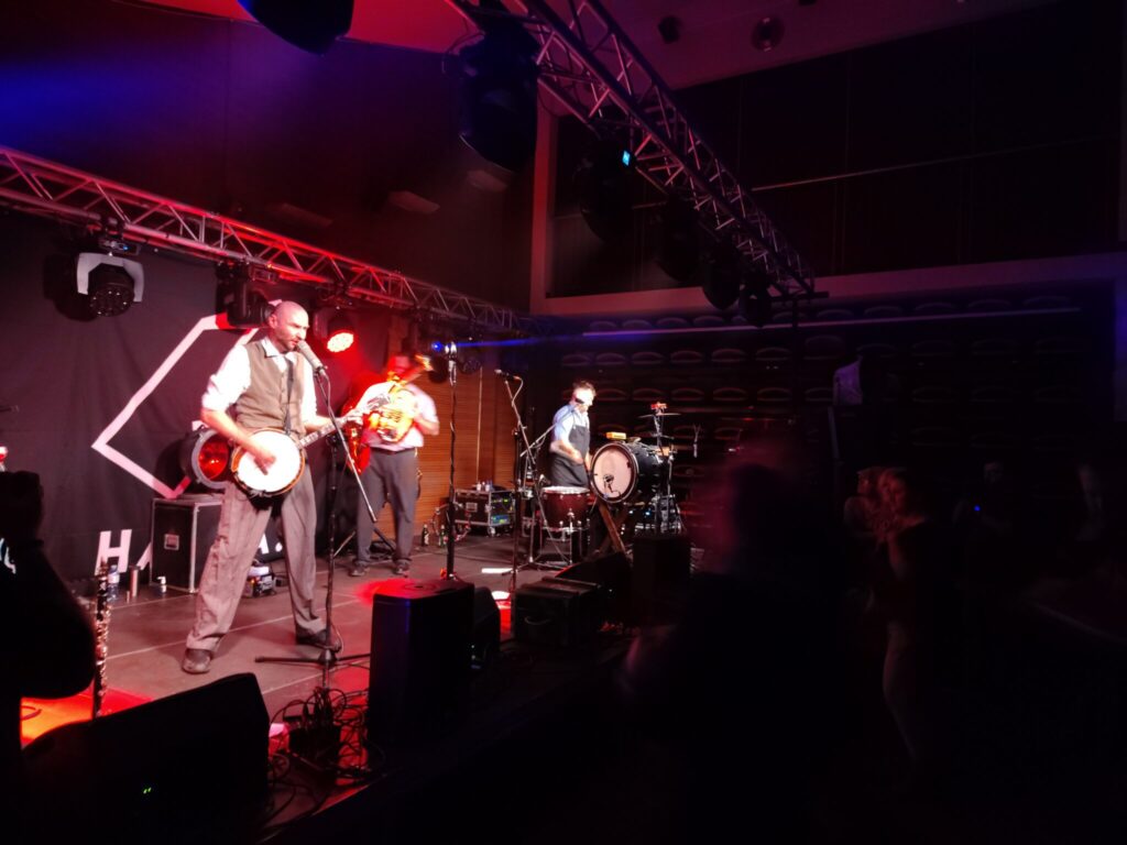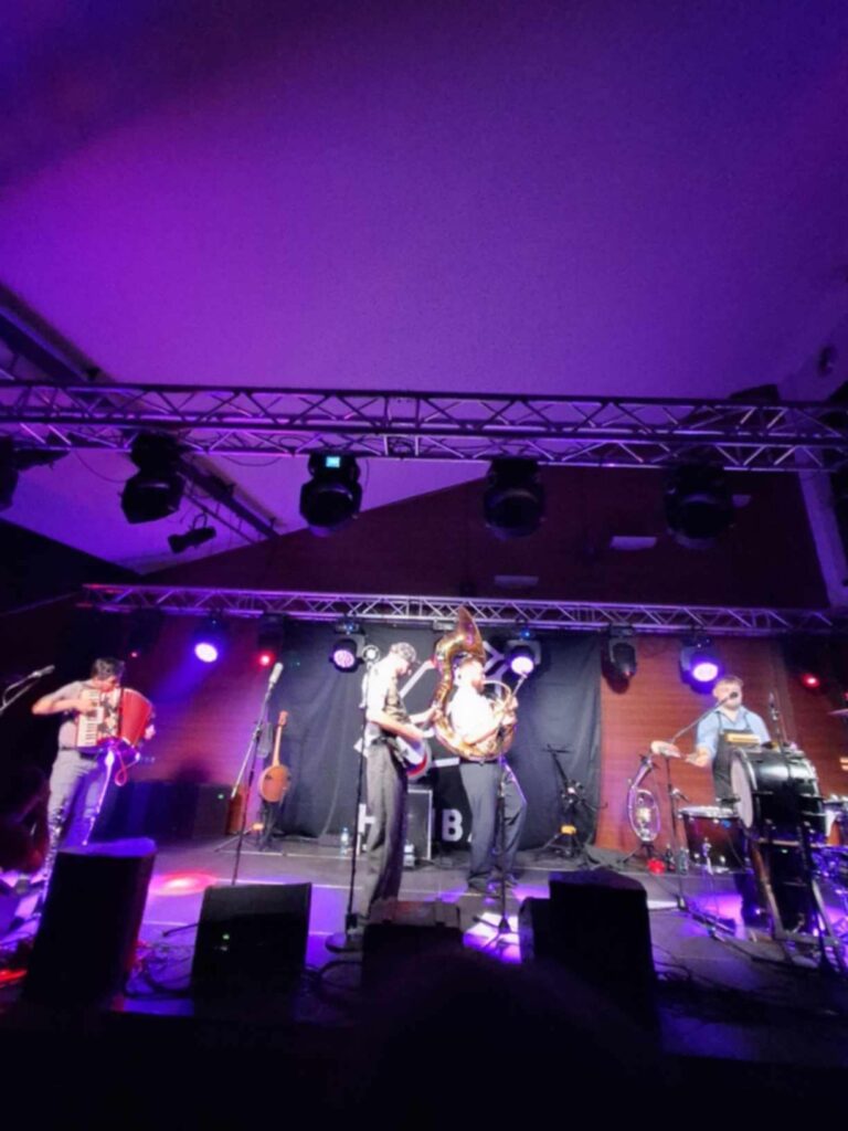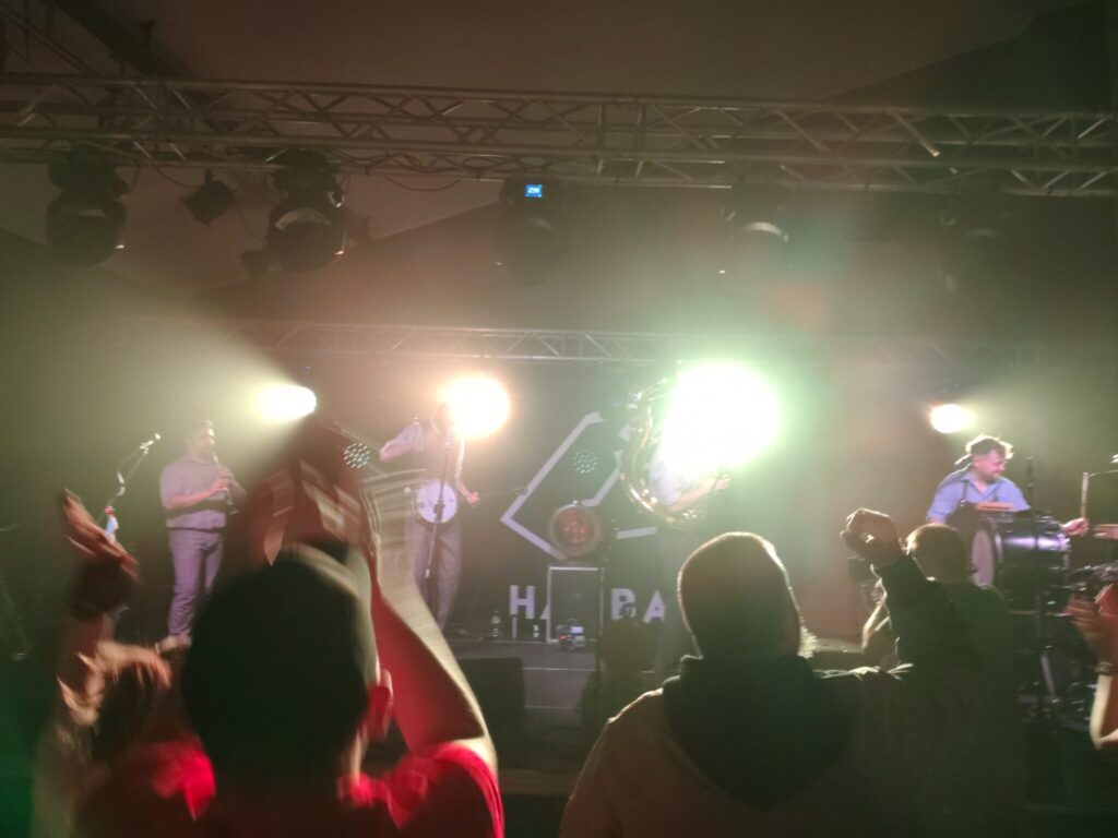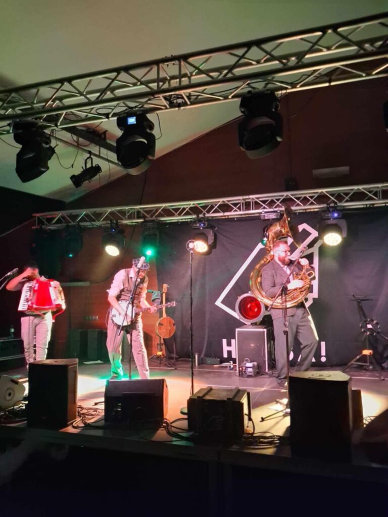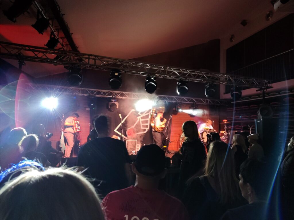 Nie wiem, czy kiedykolwiek na scenie ostródzkiej sali kameralnej, zaraz po klasyce mazurskiego hardcore punka, siarczystych gitarach i przyśpieszającej z każdą sekundą perkusji, wybrzmiała ludowa wersja gatunku muzyki, granego niegdyś przez Sex Pistols, na instrumentarium, które obejmowało tubę, akordeon, klarnet, czy banjo. Nie wiem też, czy kiedykolwiek po tekstach opisujących XXI wiek, spod patronatu staropunkowego powiedzenia ,,grunt to bunt”, w eter poniosły się słowa międzywojennych poetów buntowników. Malowali oni z przeszłości podzieloną, skrajną, absurdalną i pomieszaną Polskę. W końcu, nie wiem, kiedy ostatnio podłogi naszego amfiteatru zaznały tyle butów. Nie tylko „wyjadaczy” gatunków ciężkich i szybkich, ale również glanów młodszego pokolenia.